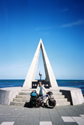 暫らく走ると、海が広がり、そこに岬が見えます。宗谷岬です。